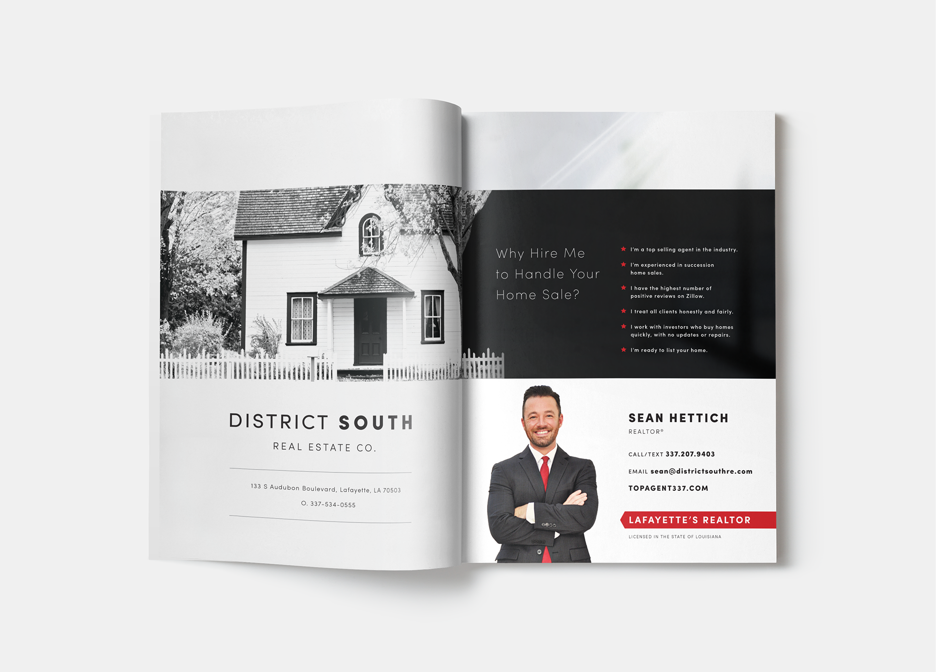 Full spread magazine advertisement for District South Real Estate